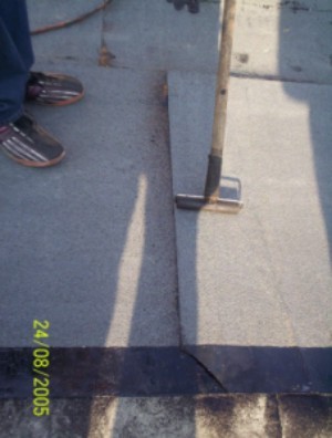 odklejaniu papy na krawędzi styku połaci dachowej z powierzchnią