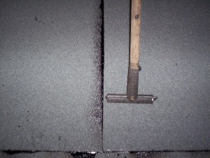 Arkusze papy należy łączyć ze sobą na zakłady: podłużny: 12 cm, poprzeczny: od 12cm do 15cm. Asfalt, który wypłynie należy posypać posypką w kolorze papy ( zdj. nr 3). Chroni to wypływy przed niszczącym promieniowaniem UV oraz podnosi estetykę pokrycia. Zakłady powinny być wykonane zgodnie z kierunkiem spływu wody i zgodnie z kierunkiem najczęściej występujących wiatrów.